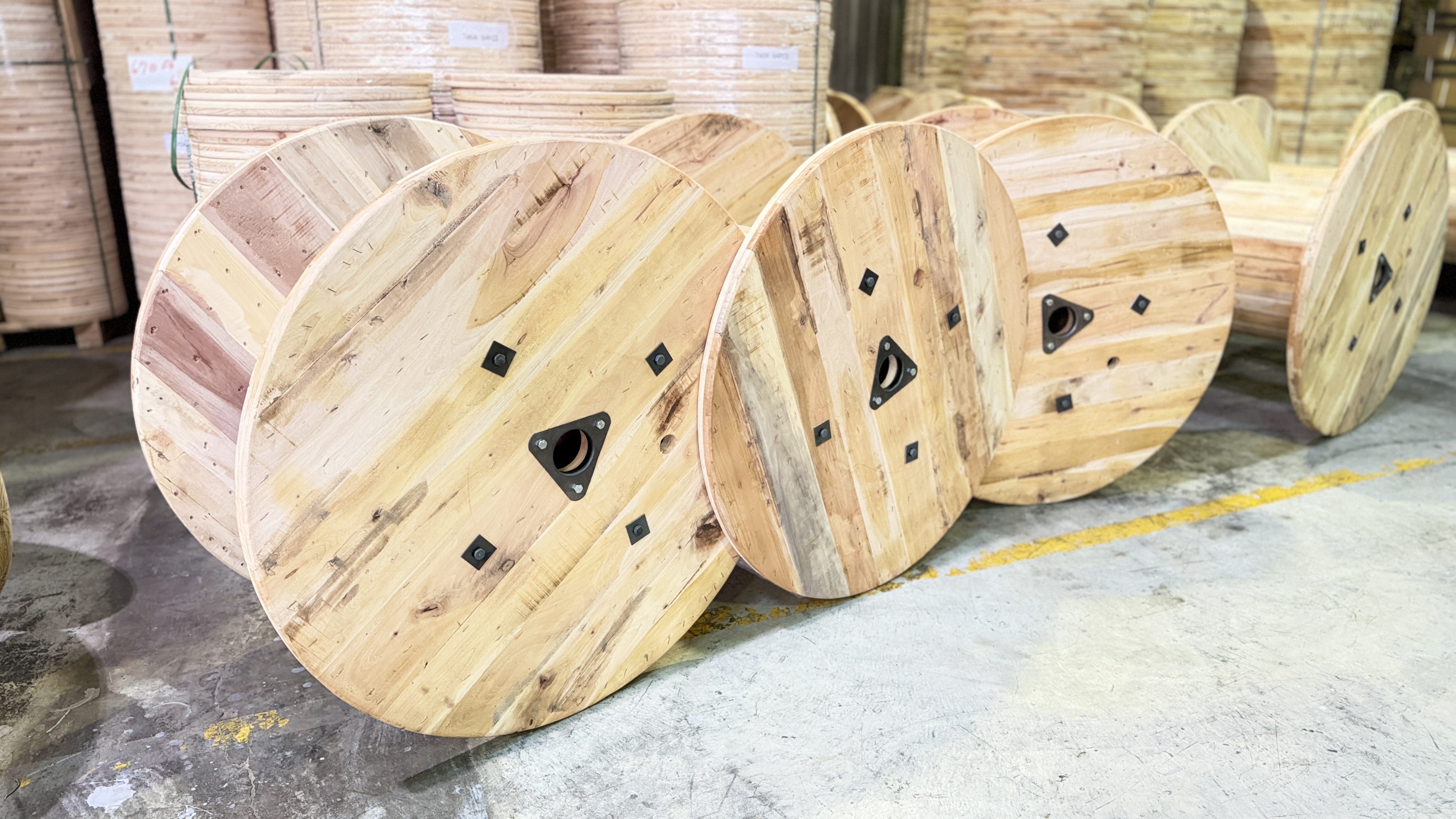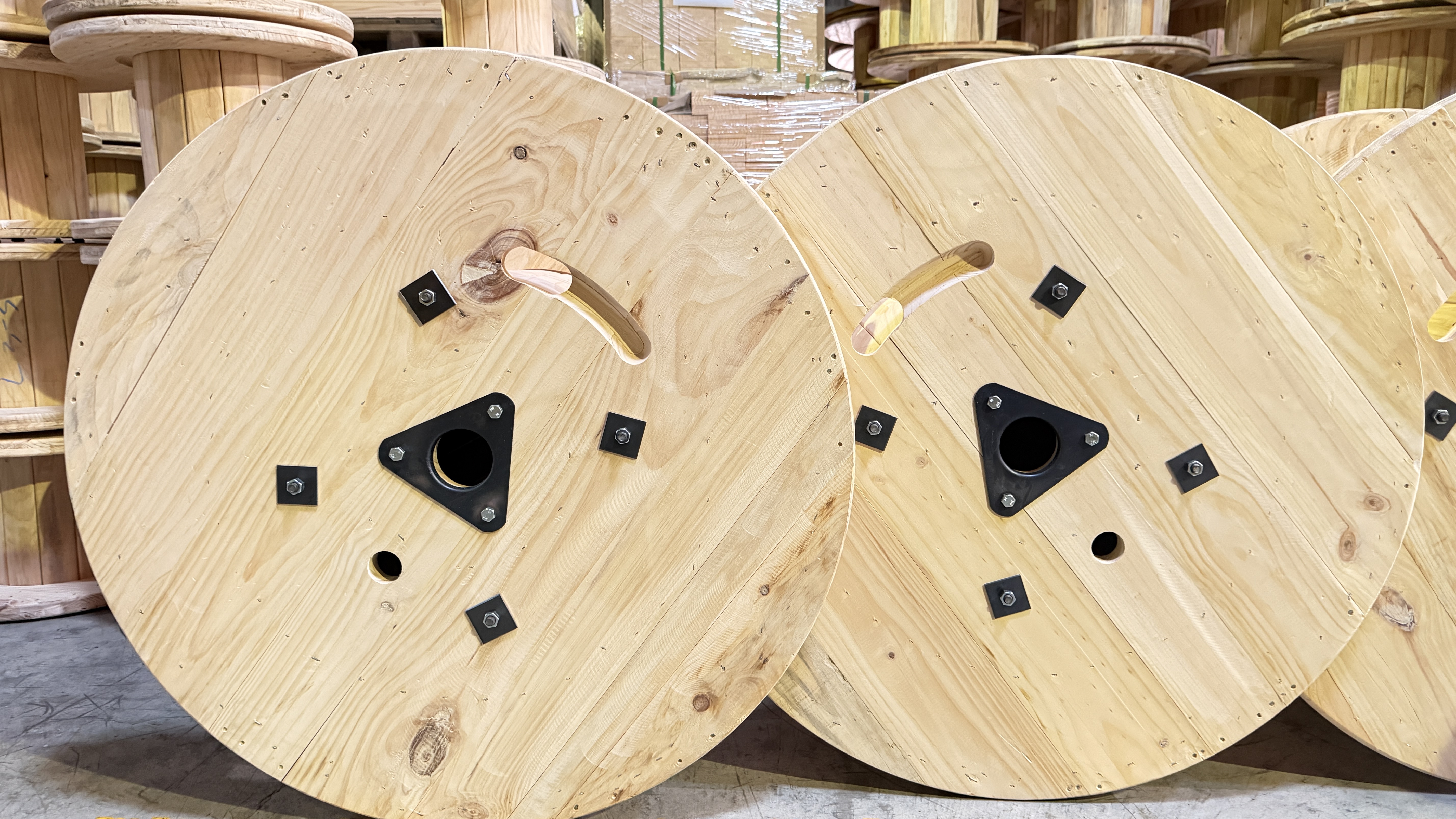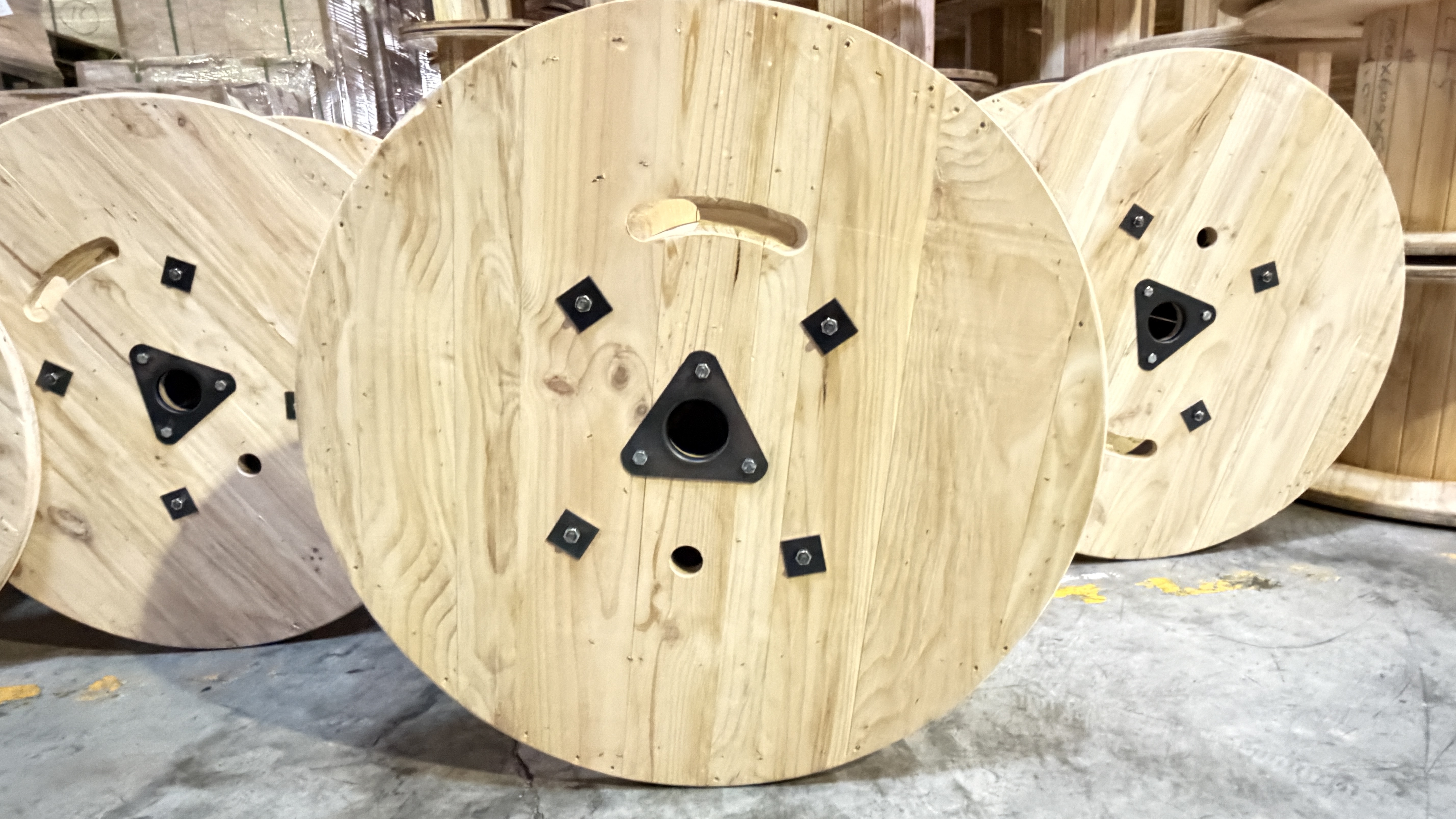 適用於電纜、電線、光纖等捲料之運輸與儲存, 主要材質採用北美松木或東南亞印尼雜木,兼顧結構強度與穩定性。
