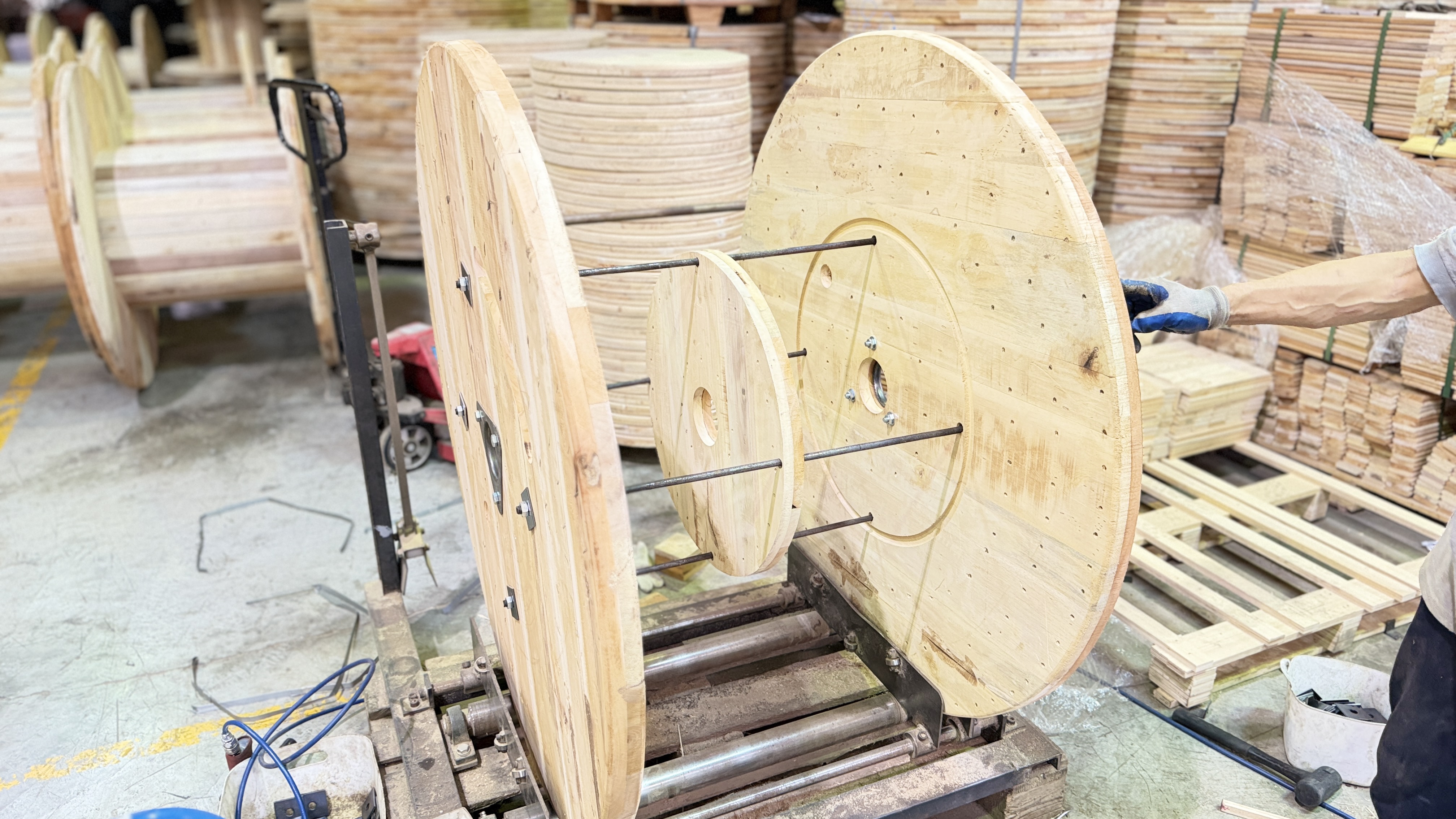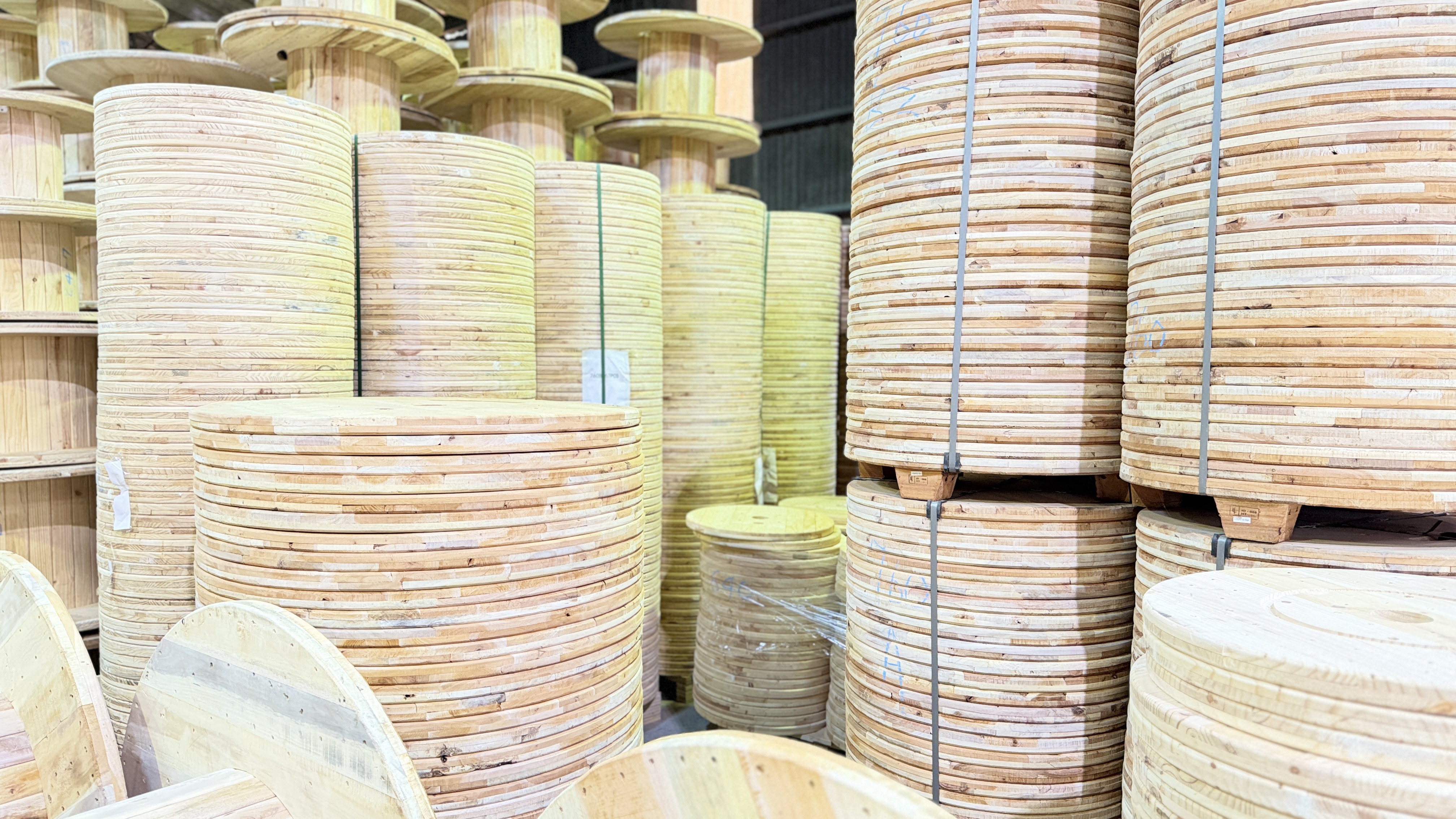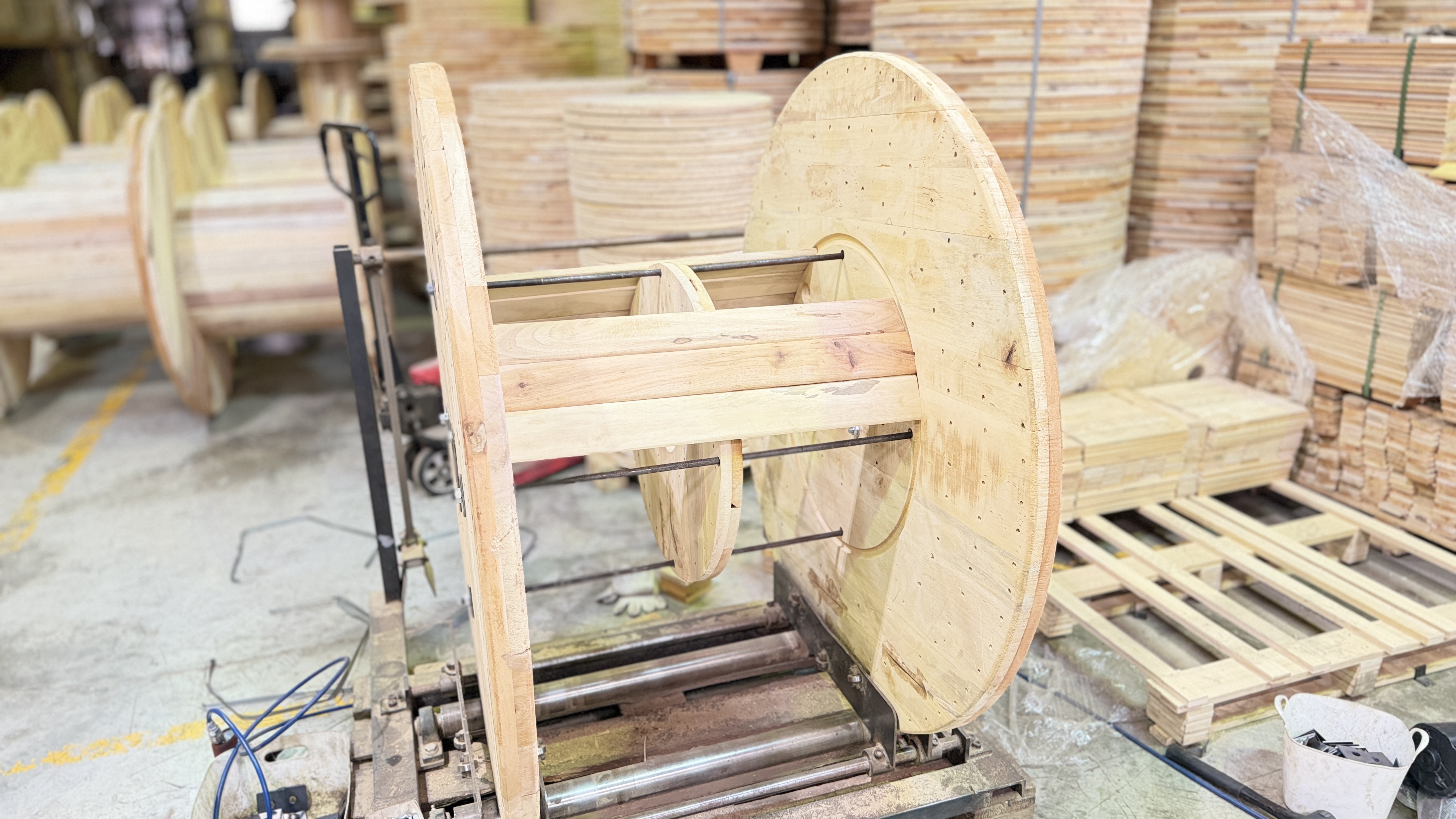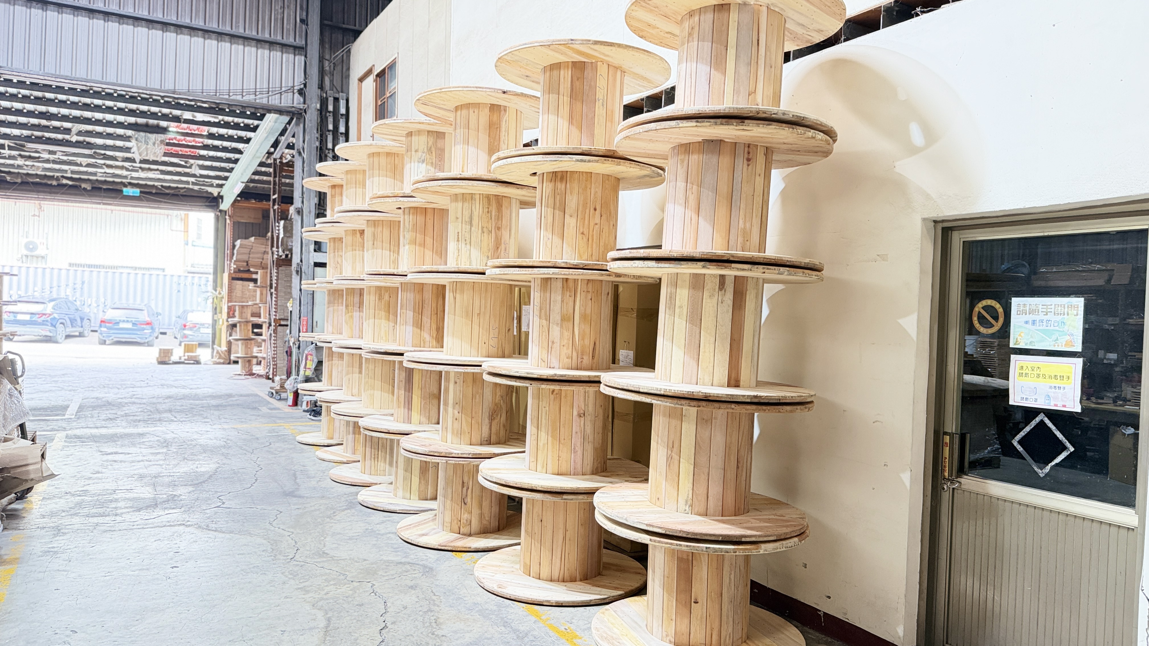 適用於電纜、電線、光纖等捲料之運輸與儲存, 主要材質採用北美松木或東南亞印尼雜木,兼顧結構強度與穩定性。