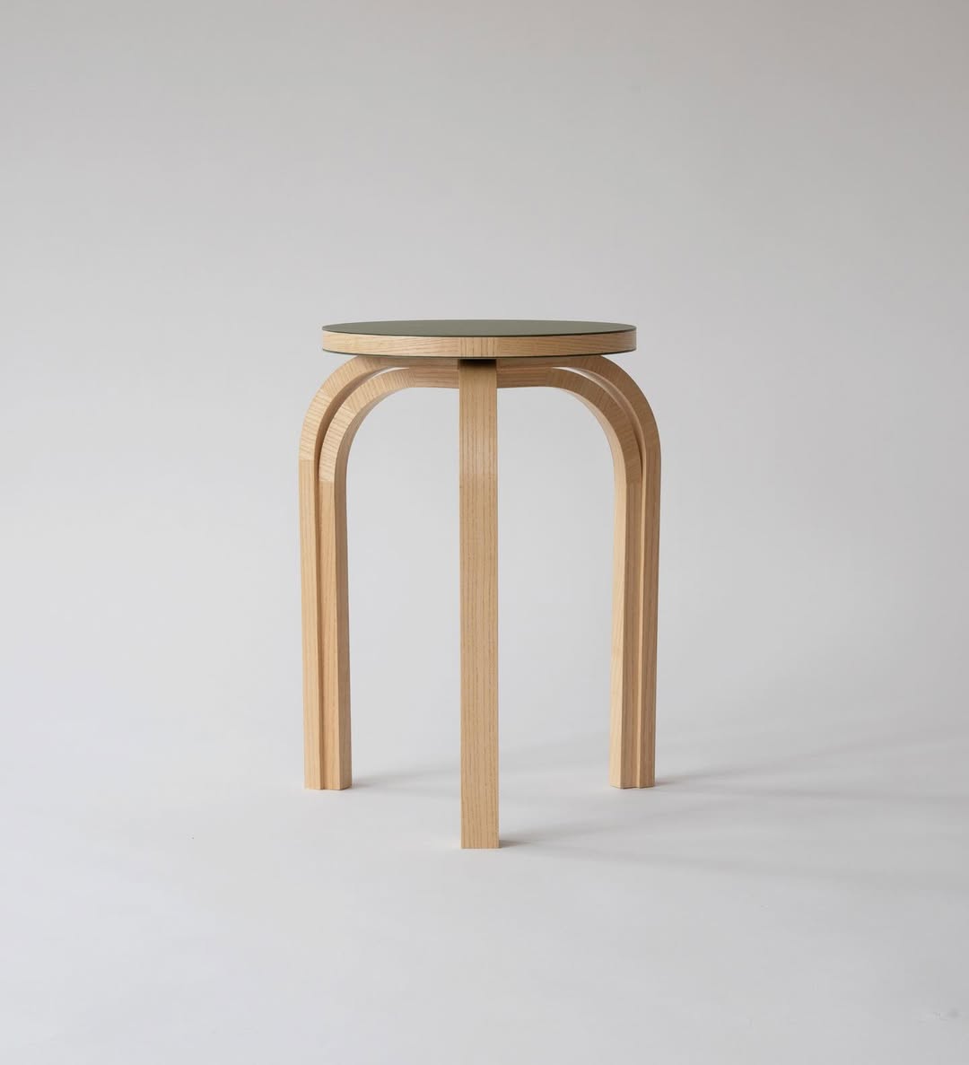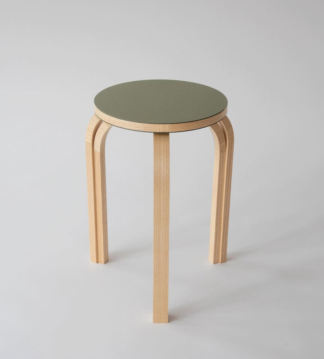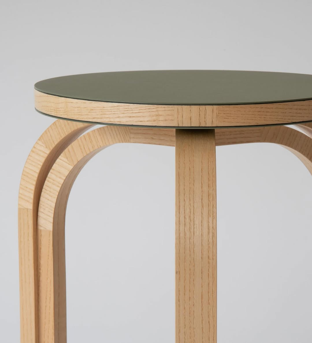 結構採用合板,表面以白蠟木貼皮與橄欖色 Forbo 家具油氈 完成,